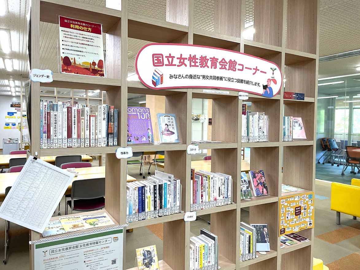 国立女性教育会館(NWEC:ヌエック)の女性教育情報センター(専門図書館)は、全国の図書館に向け、男女共同参画やジェンダーに関する所蔵資料をテーマに合わせてお届けするサービスをしています。中央館では、2階サービスカウンター前に、「国立女性教育会館コーナー」を作り資料を受け入れて配架しています。10月よりあらたな資料を受け入れて配架しましたのでお知らせします。