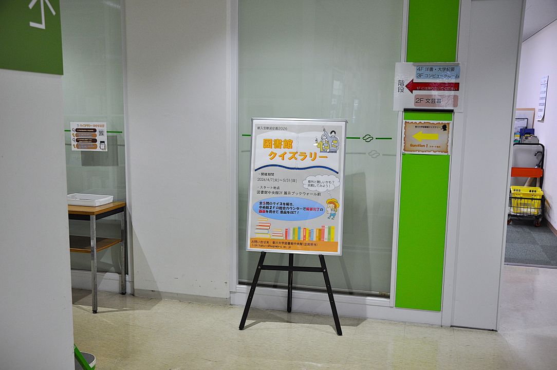 新入生の皆さんに香川大学図書館に慣れ親しんでいただくことを目的とし、中央館にて新入生歓迎企画2026『図書館クイズラリー』を下記のとおり開催します。