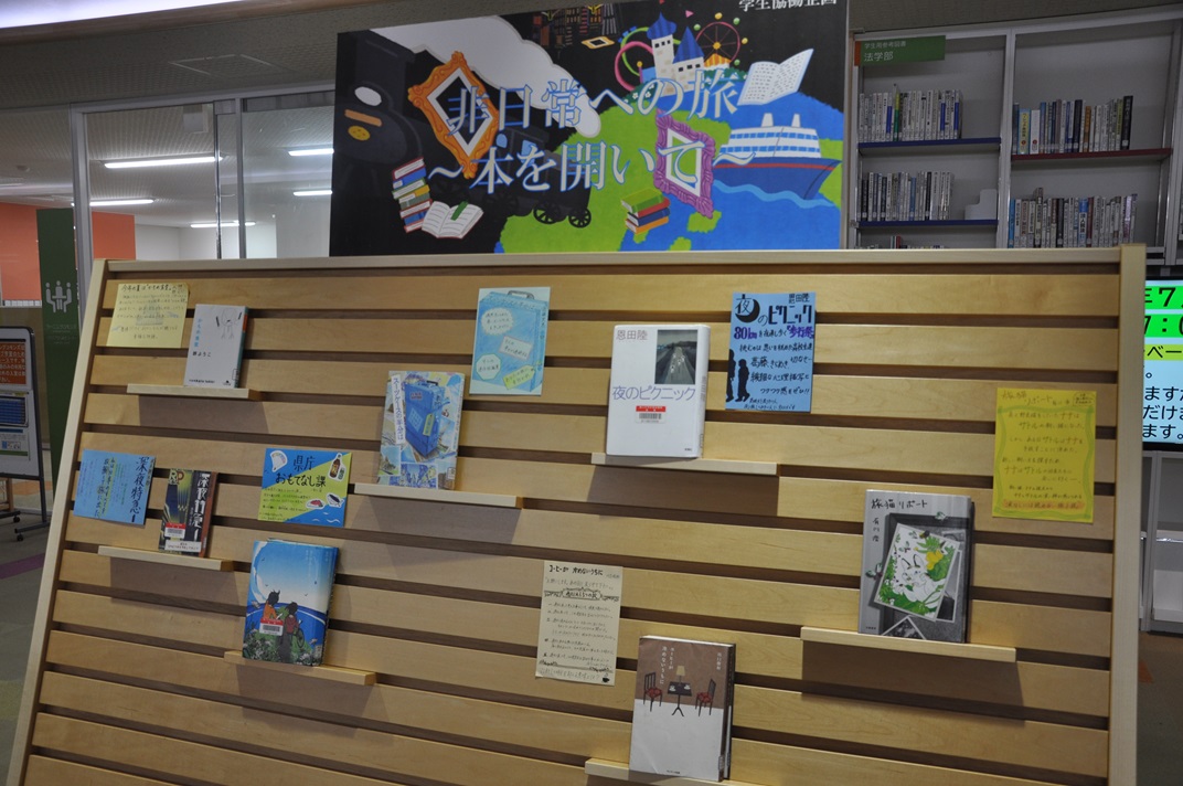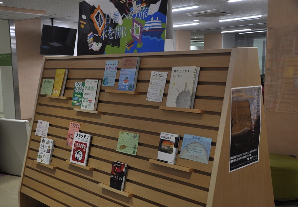 本日より、図書館中央館にて、学生協働企画展示「非日常への旅 ~本をひらいて~」を開催します。