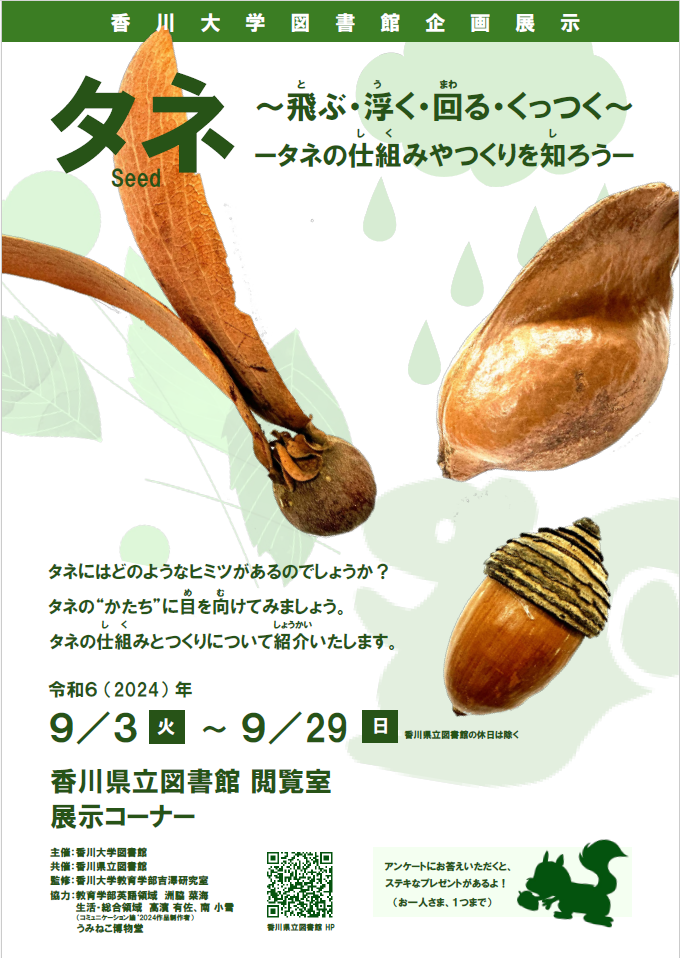 【終了】企画展示 「タネ 〜飛ぶ・浮く・回る・くっつく〜 −タネの仕組みやつくりを知ろう−」 を開催します(香川県立図書館)