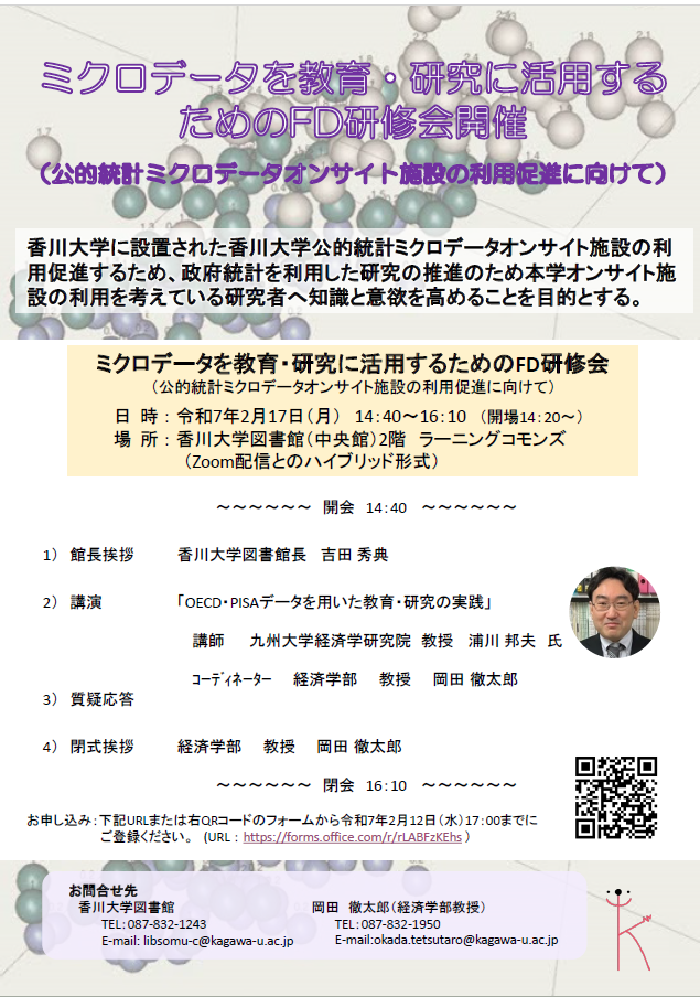 【終了】香川大学公的統計ミクロデータオンサイト室利用促進のためのFDを実施します(R7.2.17)